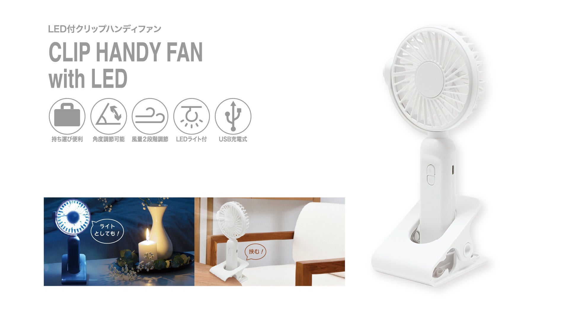 商品ページ:hac72.com/mainsite/clip_handy_fan_led/