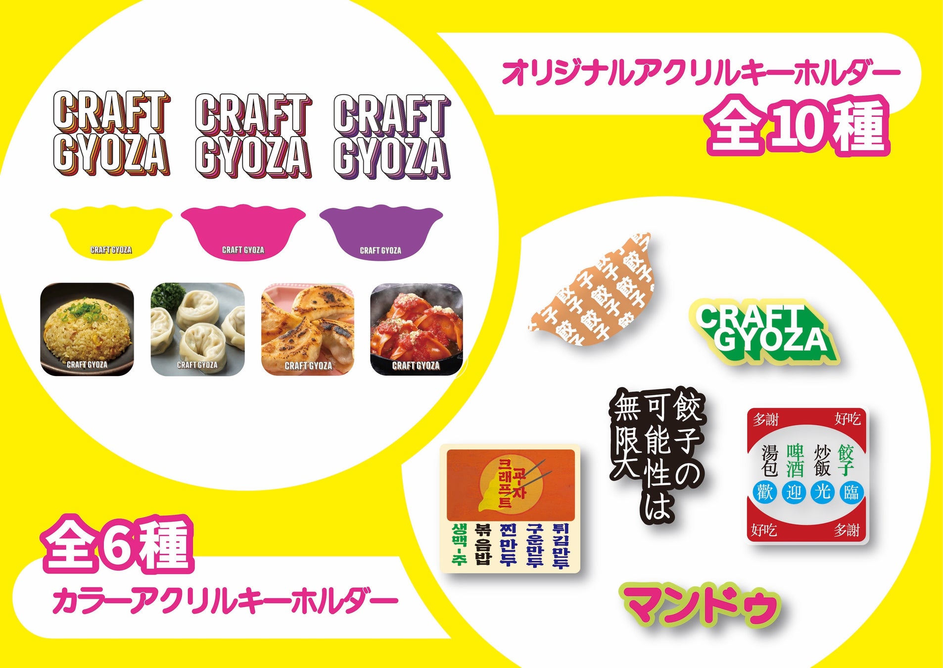 “餃子愛”をカタチにしたカプセルトイコーナーが登場!アクリルキーホルダーは、ラメやロゴ、料理名をさまざまな言語でプリントした遊び心あふれるデザイン。思わず何度も回したくなる可愛さ!イベント来場の思い出に、誰かと訪れた記念に、そして餃子愛を語るシンボルとしてぜひカプセルトイを回してみてください!