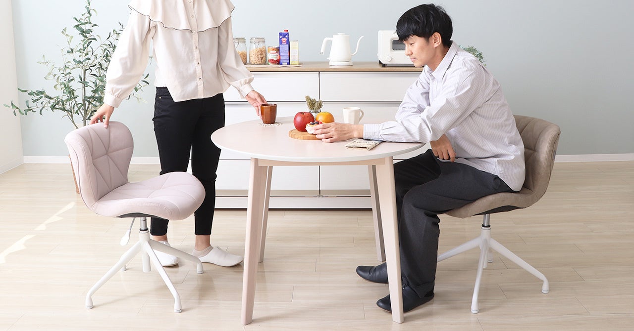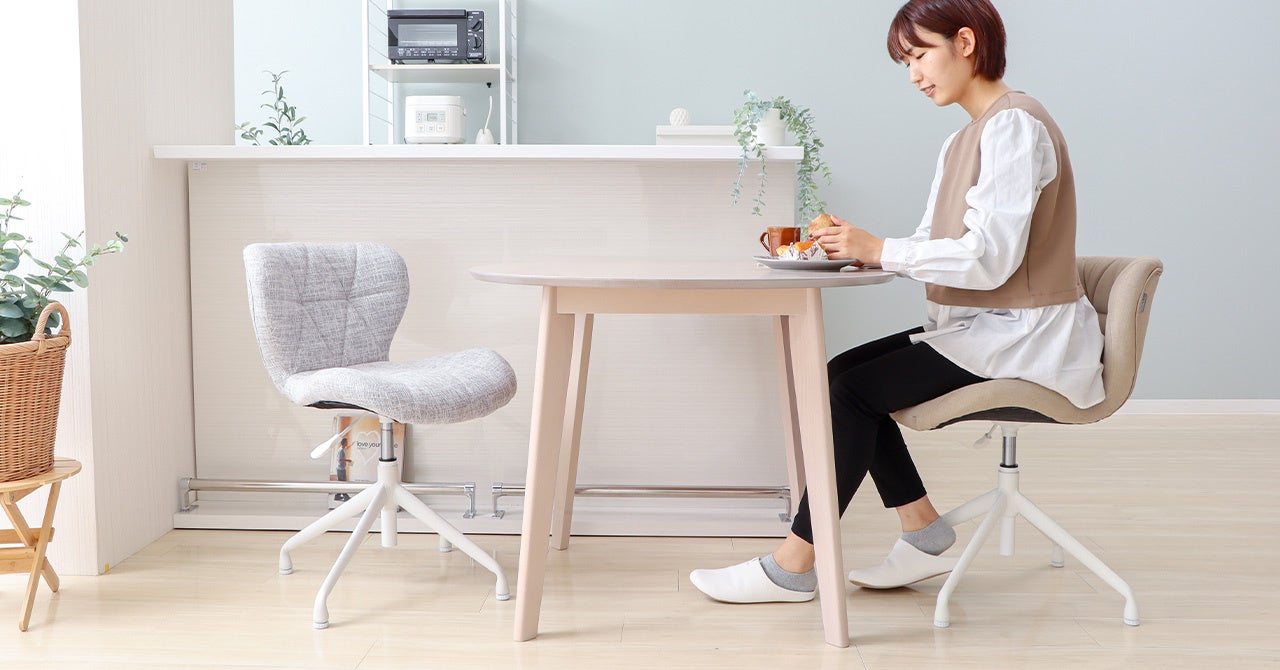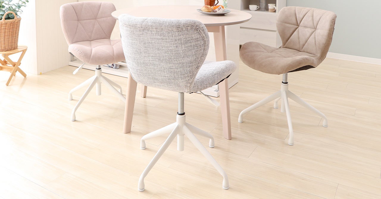 座面が回転するので、体の向きをさっと変えられます。出入りのときに、体や椅子を動かすのを最低限に抑えられるので、引きずり音が気になる場所にも。