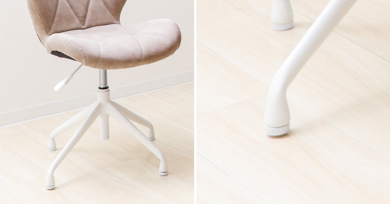アジャスターまでこだわった真っ白な脚は、丈夫なスチール製で安定感もあります。