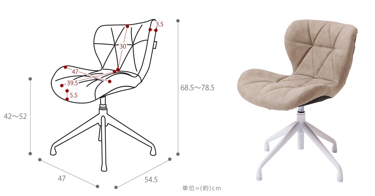 サ イ ズ :(約)幅47cm×奥行54.5cm×高さ68.5~78.5cm