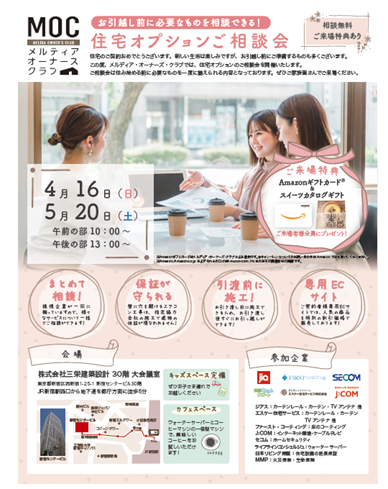 当社グループの物件を購入されたお客様が、お引越しを前に抱える様々な疑問や不安を解消すべく、ご契約者様の新生活のサポートになればとこの度の住宅オプションご相談会の開催にいたりました。
