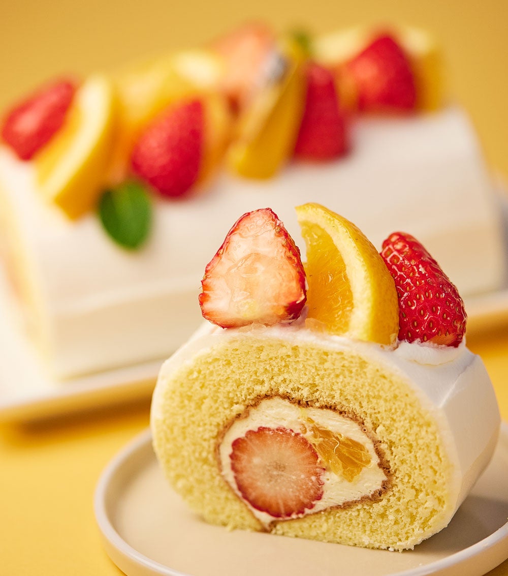 オレンジと苺がたっぷりの果肉感あふれるフレッシュなロールケーキ。