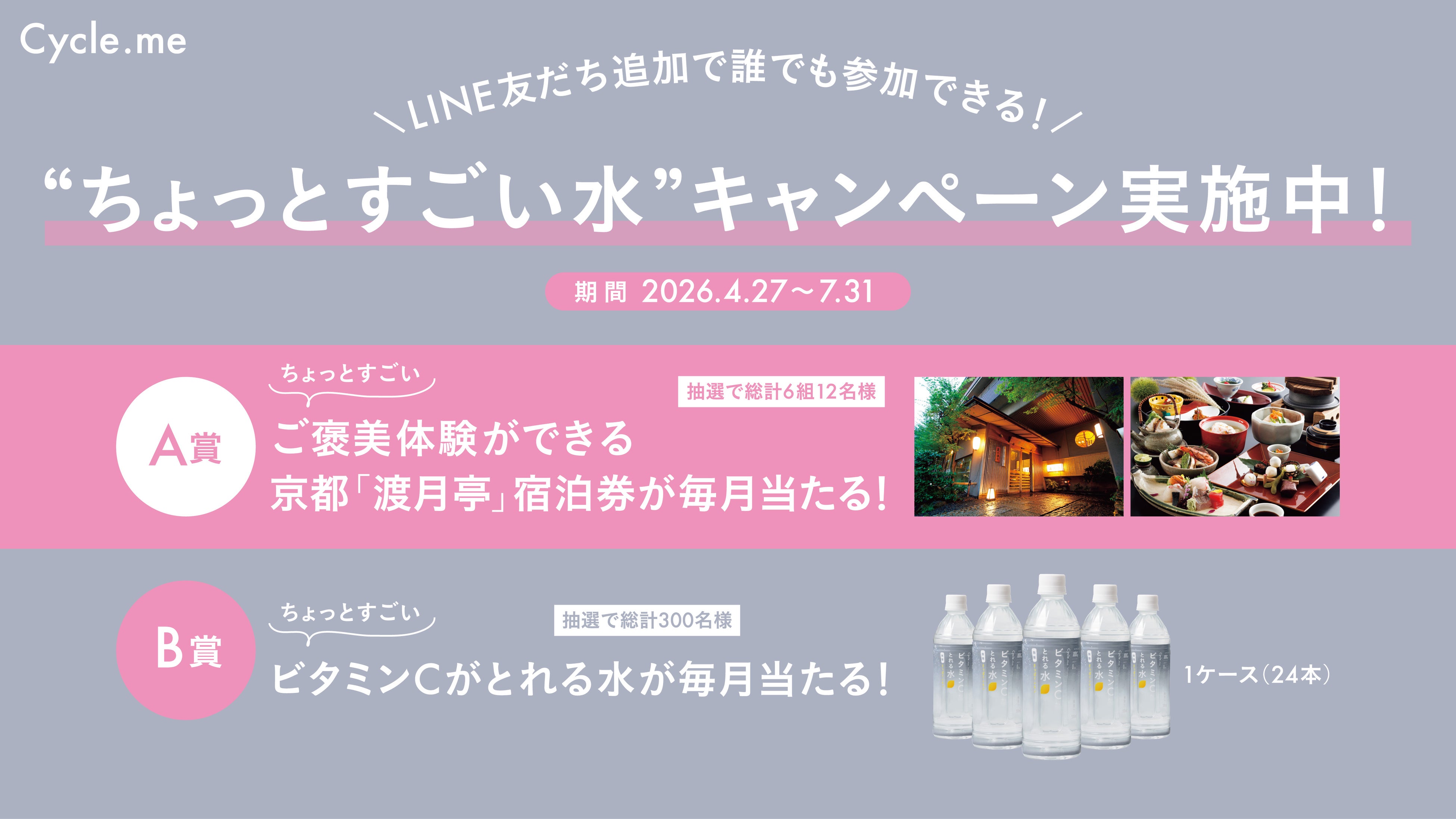 株式会社ドットミーが展開するCycle.me(サイクルミー)は、新商品「ビタミンCがとれる水」の発売を記念して、2026年4月27日(月)よりキャンペーンを開始します。