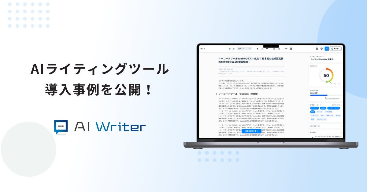 SEO対策に特化したAIライティングツール「AI Writer」を提供する合同会社ゼロイチスタート(本社:東京都中央区)は、このたび導入事例を公開いたしました。
