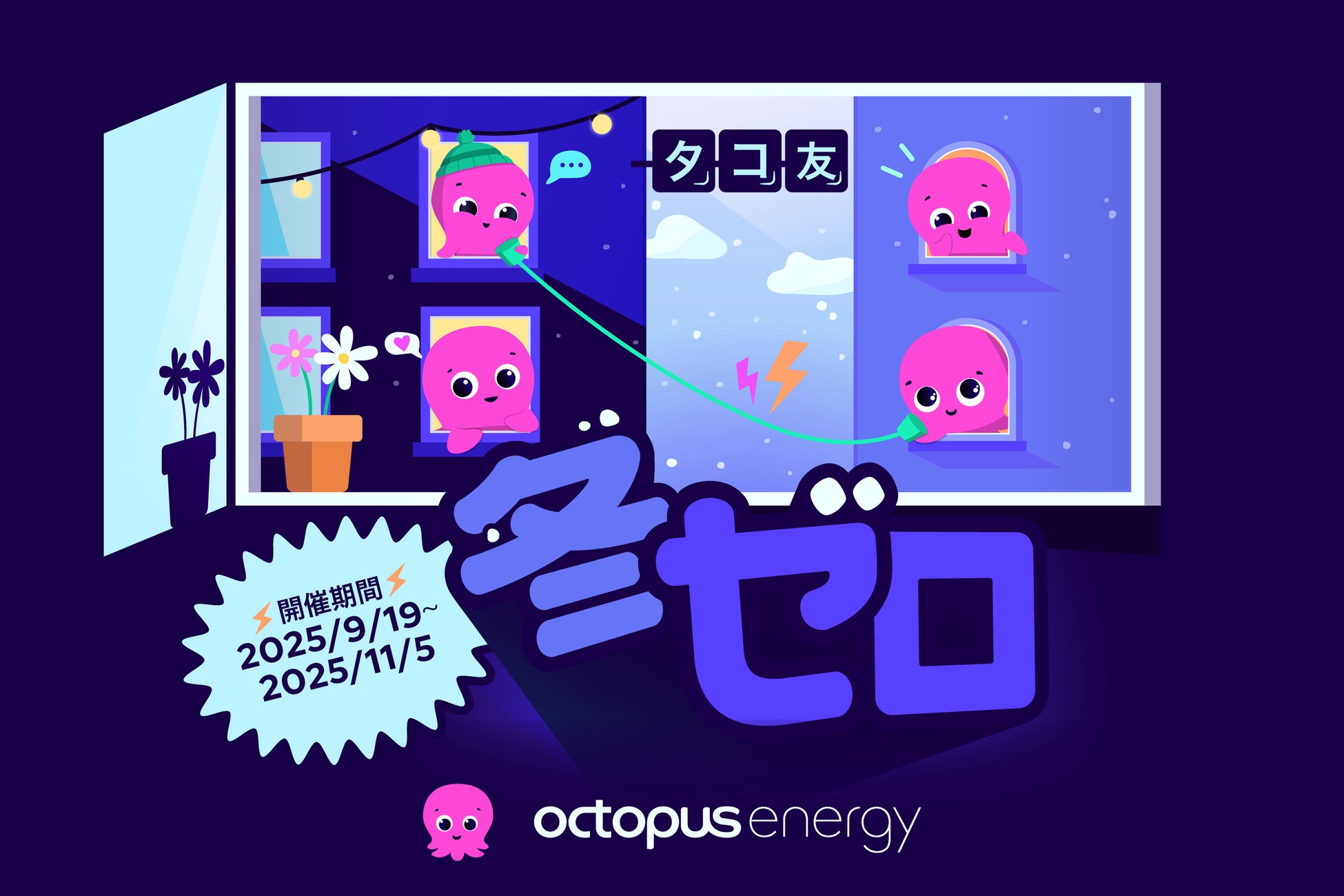 テクノロジーの力で、CO₂を排出せず地球環境への負担を軽減する再生可能エネルギーを、魅力的な価格とユニークなサービスを通じて世界中に提供するオクトパスエナジーは、2025年9月19日から「友達紹介割」”タコ友 冬ゼロ” を実施いたします。