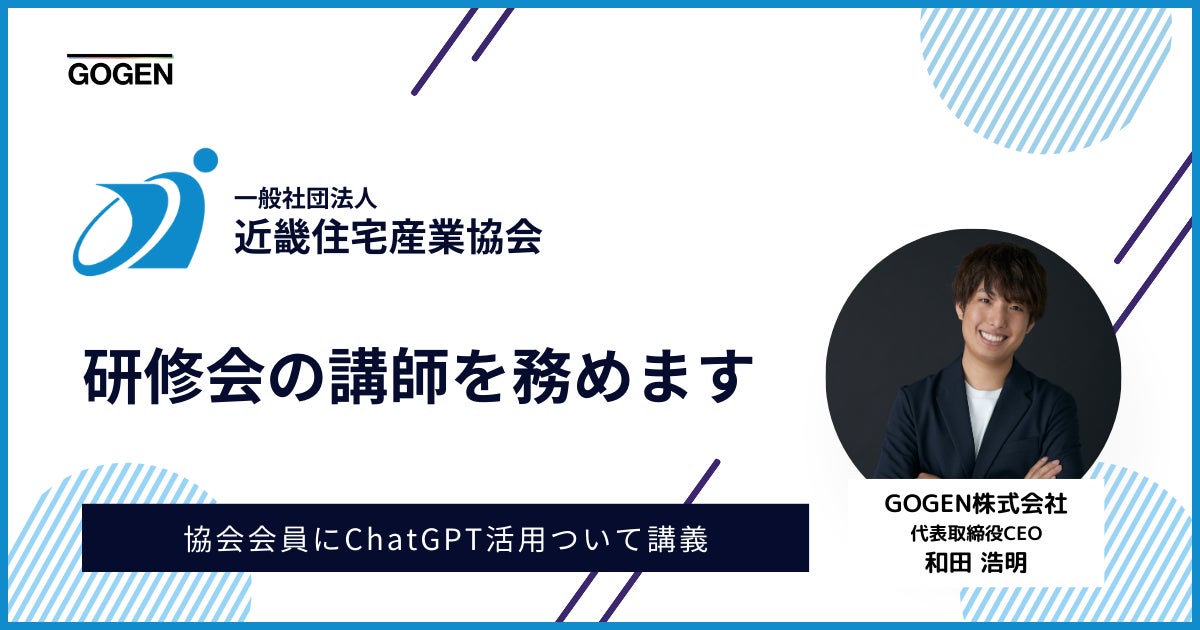 不動産売買支援ハブ「レリーズプラットフォーム」の開発・提供をするGOGEN株式会社(本社:東京都港区)の代表取締役CEO:和田 浩明が、2024年10月4日(金)に開催される一般社団法人 近畿住宅産業協会主催の研修会の講師を務めます。