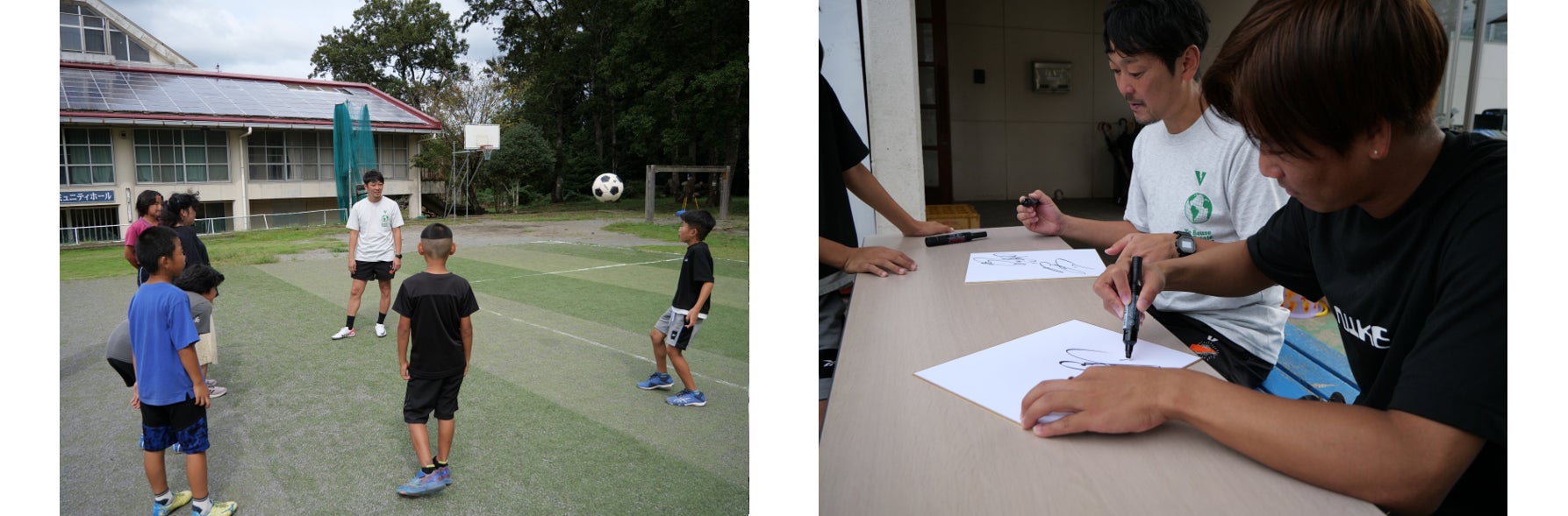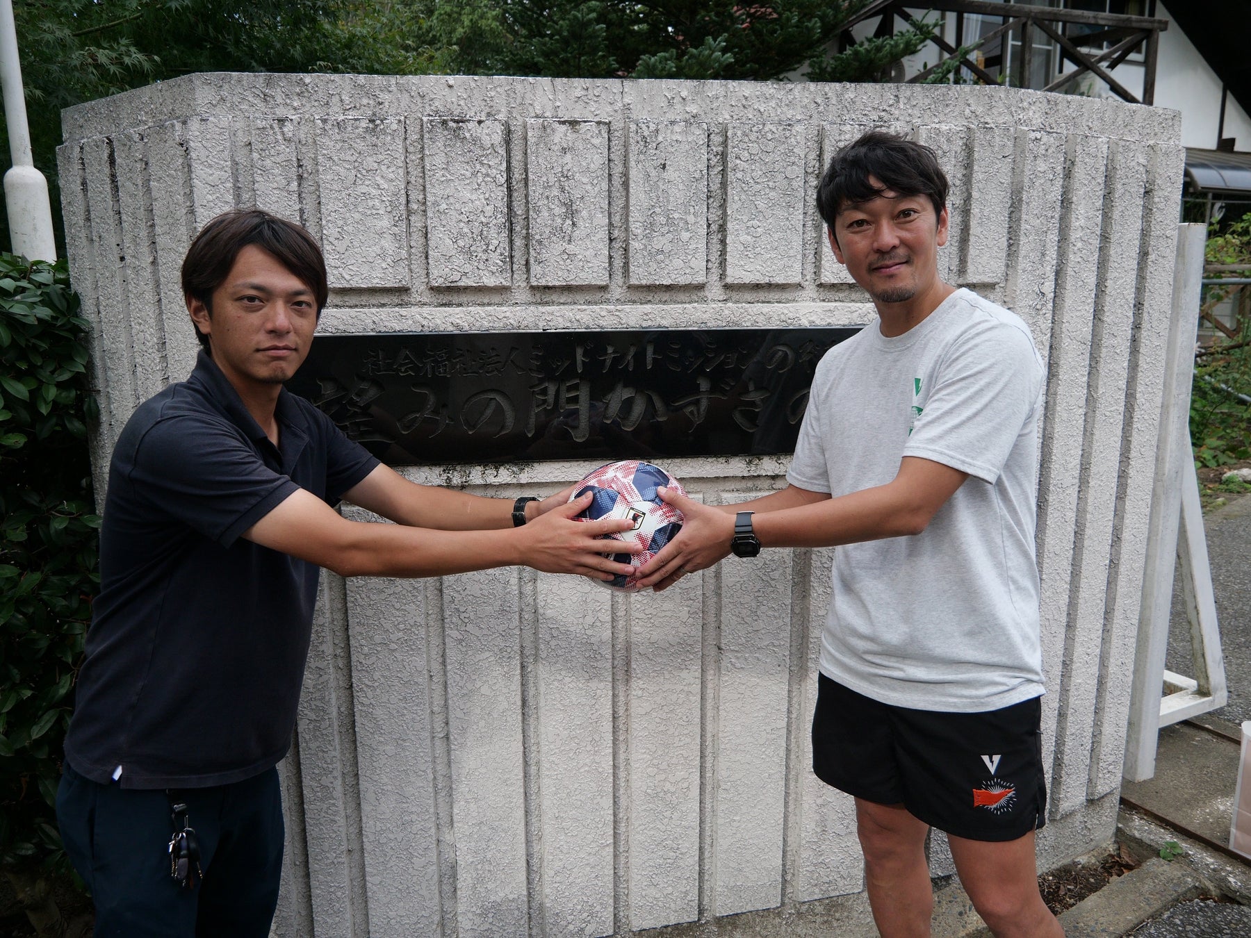 元プロサッカー選手の羽生直剛さん、河野広貴さんをサッカークリニックのコーチとしてお招きし、子供たちと食事、ミニゲーム、サイン会などで行い交流を深めました。また、クリニックの終了後には施設に対し、サッカーボールと株式会社SouGo様よりご提供いただいた薬用入浴剤を寄贈いたしました。