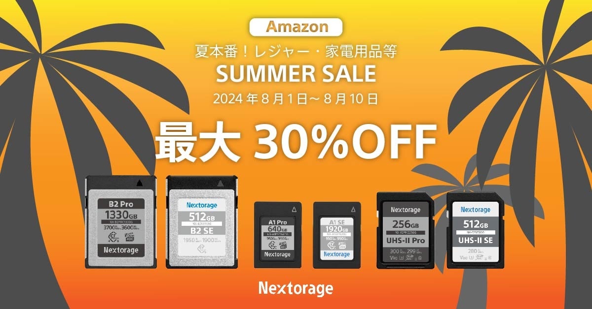 Nextorage株式会社(ネクストレージ株式会社、代表取締役:本多 克行、神奈川県川崎市)は、8月1日(木)~8月10日(土)にAmazonにて開催される「夏本番!家電・レジャー用品等のサマーセール」に参加することをお知らせいたします。