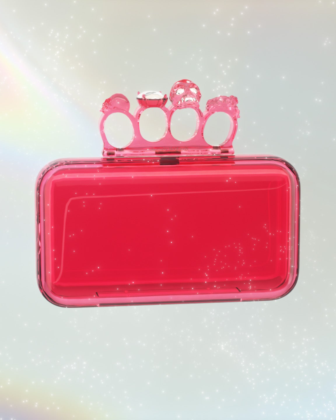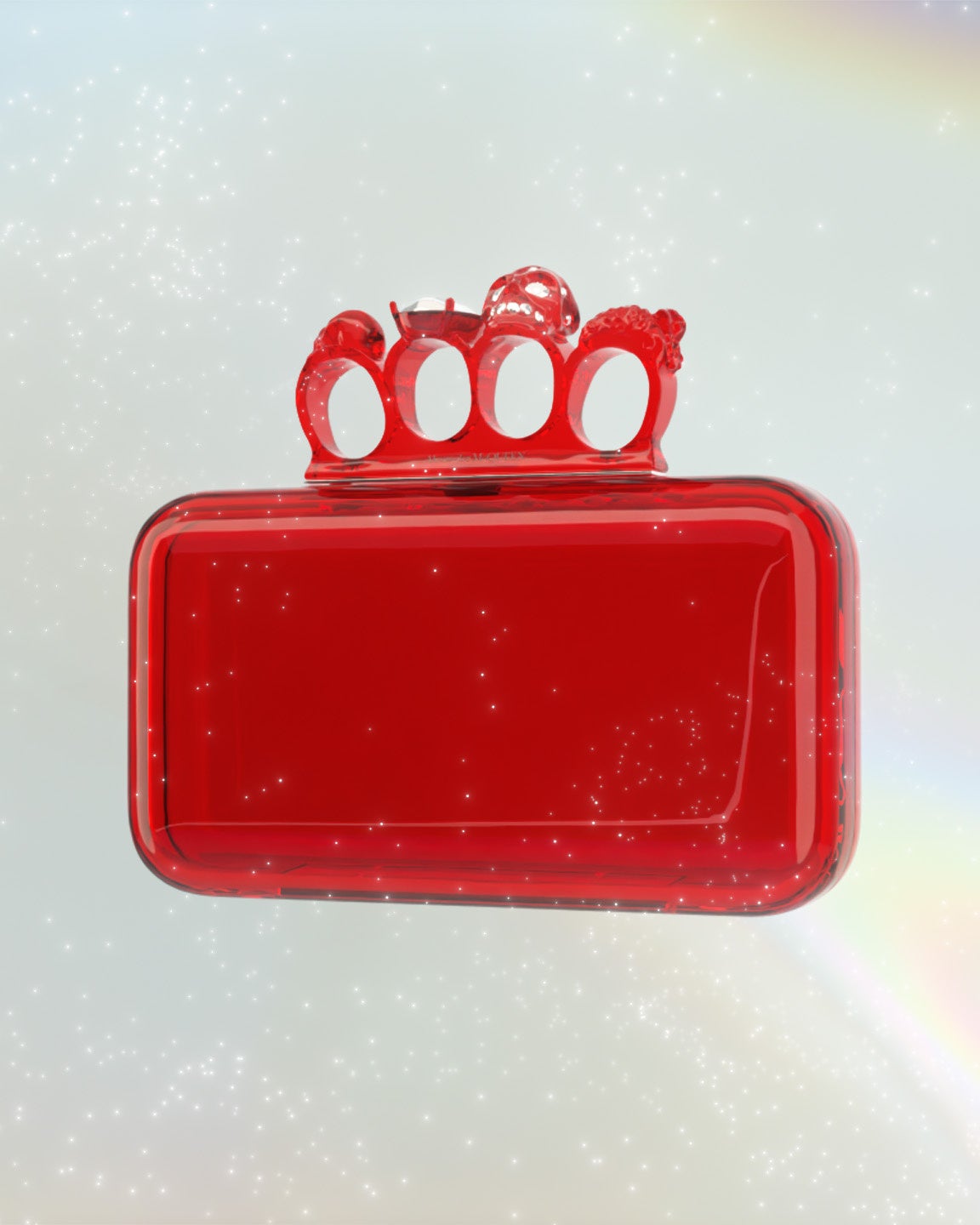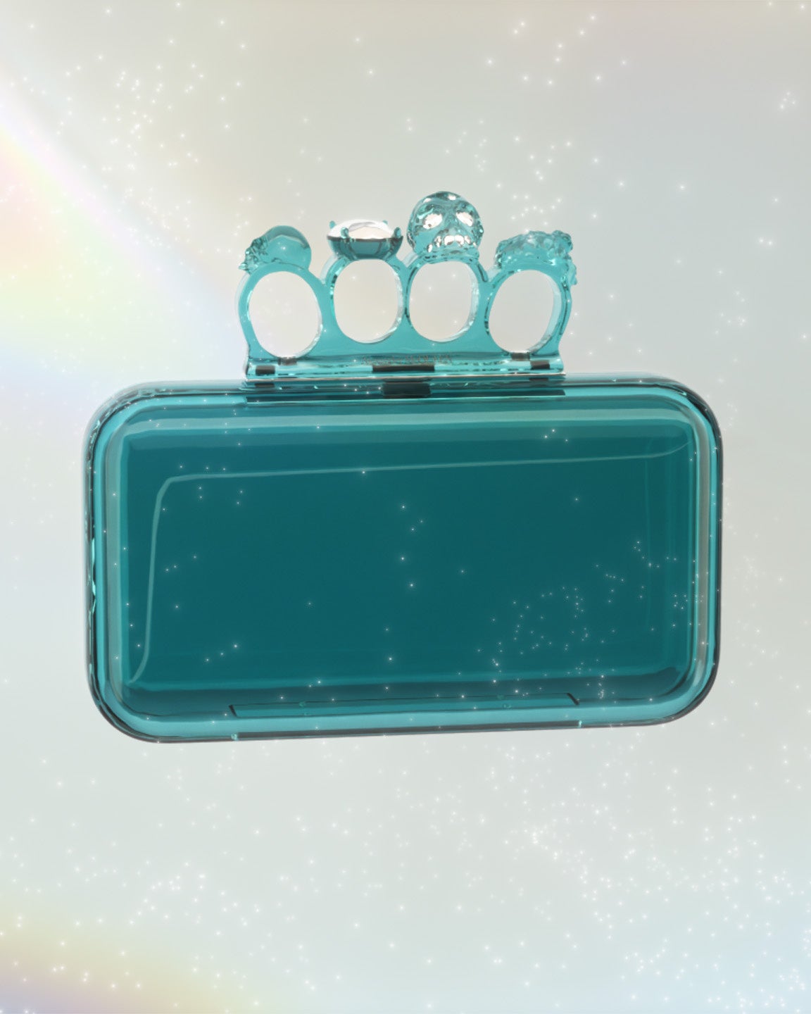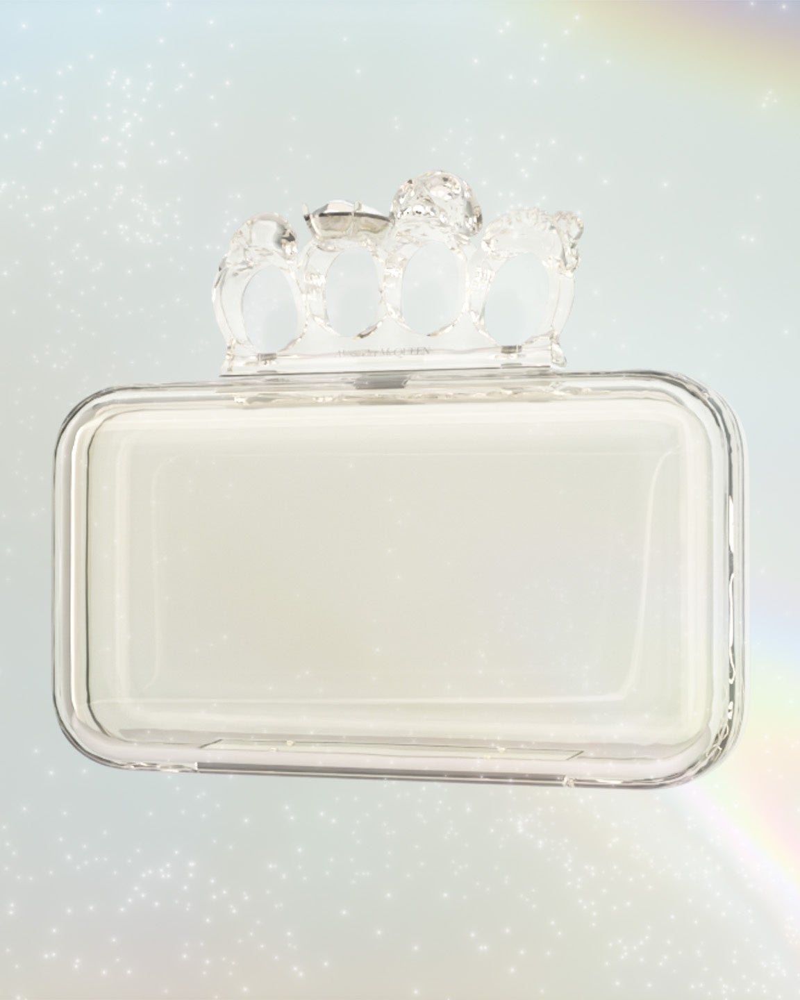 スカルやスワロフスキーをあしらったジュエルドフォーリングハンドルが、特徴的な透明のフォーリングクラッチは、自然や水の美しさにインスパイアされ制作されました。