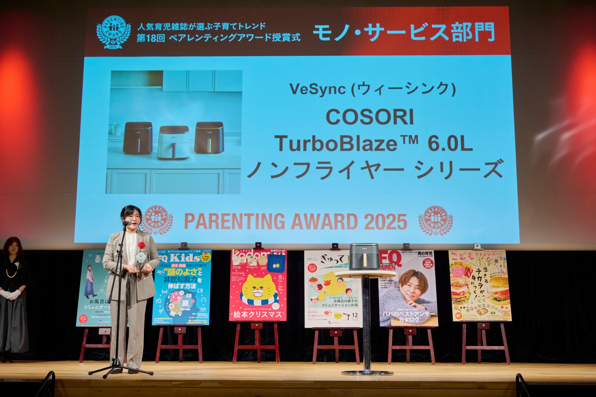 アメリカ発の小型家電メーカーVeSync(ウィーシンク)の日本法人、Vesync Japan株式会社(本社:東京都千代田区、以下VeSync)は、当社の「COSORI TurboBlaze™ 6.0L ノンフライヤー」シリーズが、育児に関する最新トレンドやヒット商品を表彰する「第18回 ペアレンティングアワード」において、モノ・サービス部門を受賞いたしました。