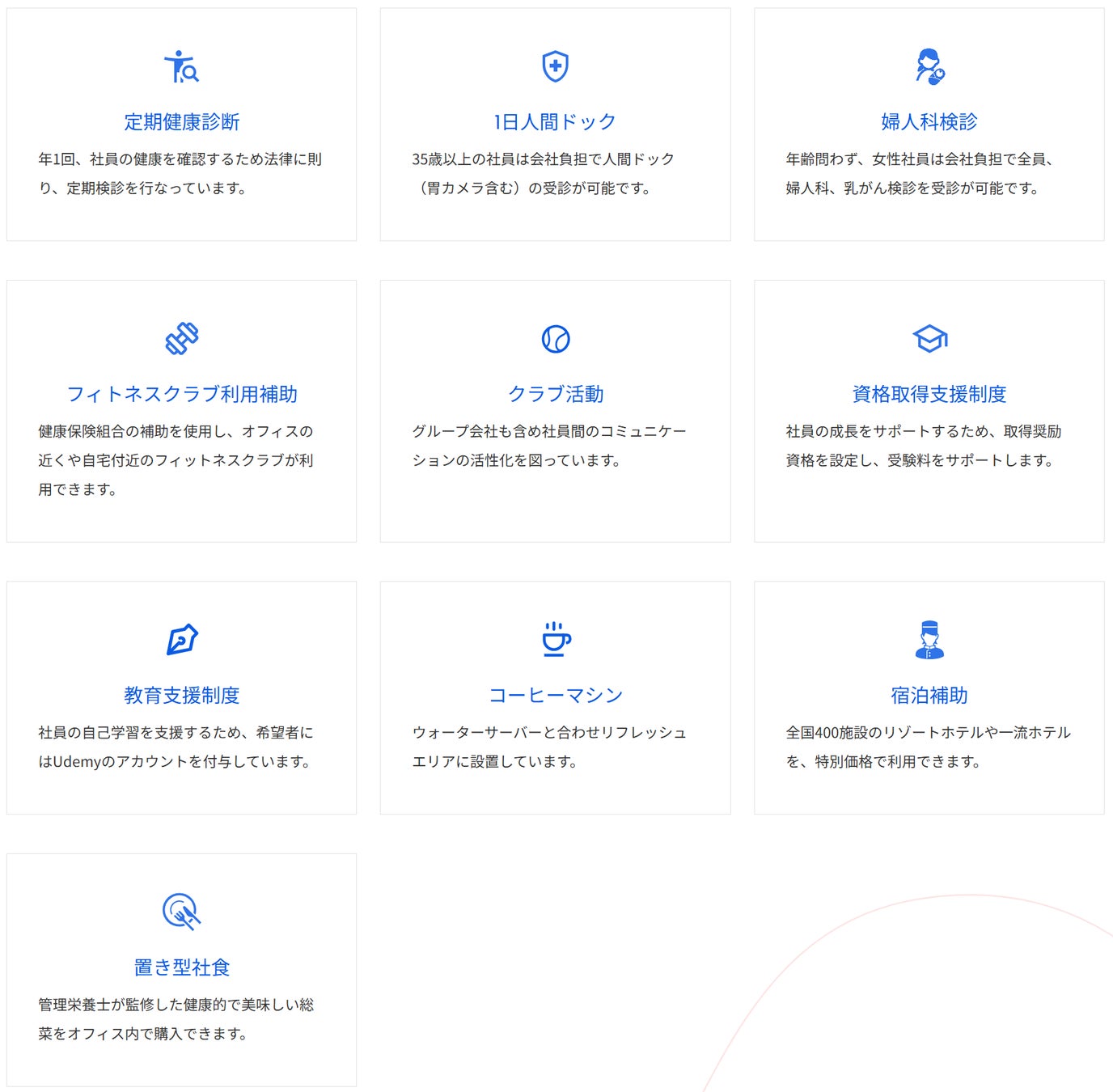 当社は、メンバーの心身の健康維持や、自己研鑽を促すための様々な福利厚生制度を設けています。