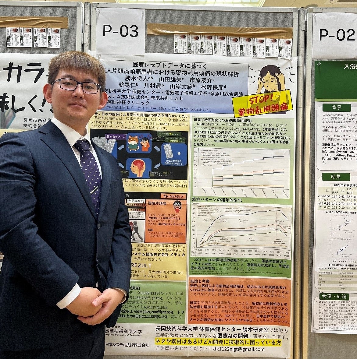 当社と勝木 将人先生(糸魚川総合病院、諏訪赤十字病院 脳神経外科・頭痛外来、現 長岡技術科学大学 准教授)との間において実施中の「片頭痛と、片頭痛医薬品及び薬物乱用頭痛の関連性」に関する共同研究の成果について、第6回日本メディカルAI学会学術集会にて発表いたしました。