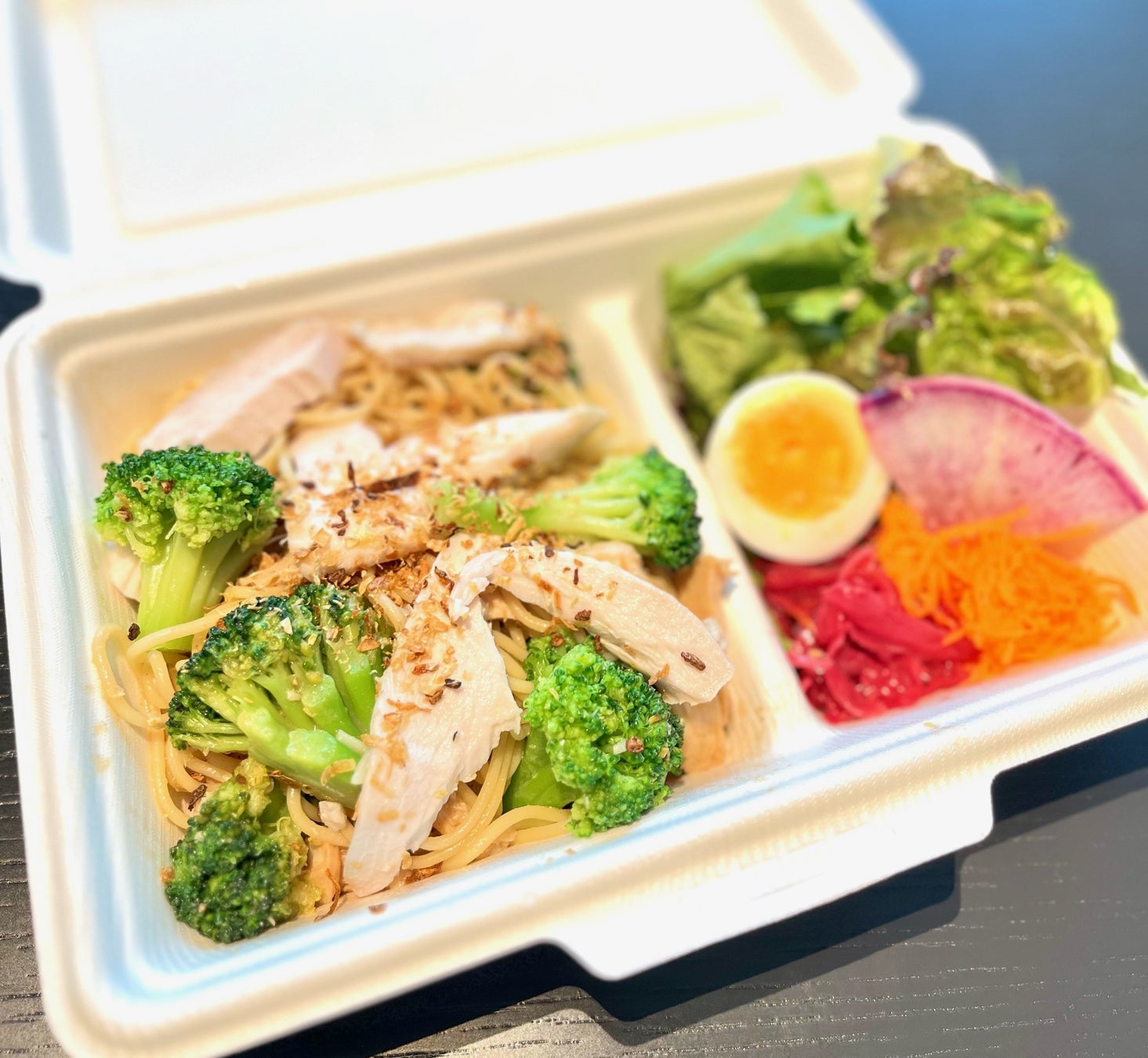 「タマネギぐるりこ®」を使用したメニュー<蒸し鶏とブロッコリーの和風冷製パスタ>