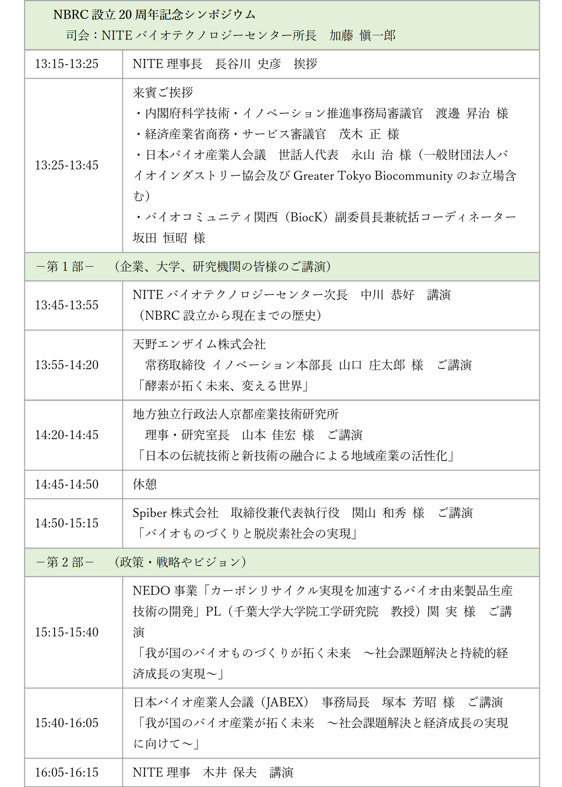 NBRC設立20周年記念シンポジウムサイト:https://www.nite.go.jp/nbrc/information/nbrc20th_symposium.html