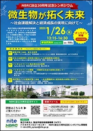 【参加者募集中】世界最大級の微生物資源を有する “NITEバイオテクノロジーセンター(NBRC)” が設立20周年記念シンポジウムを開催(1月26日、無料オンライン)