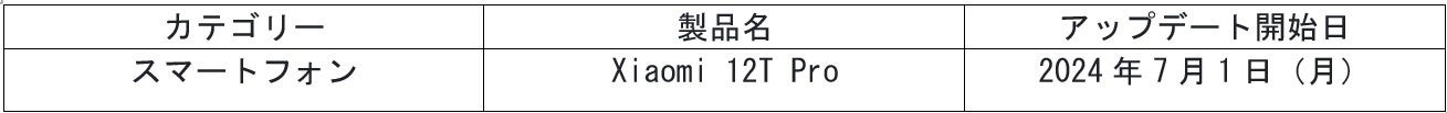 対象製品であるXiaomi 12T Proは本日2024年7月1日より、一部ユーザを対象にアップデートを開始し、順次対象ユーザを拡大してまいります。