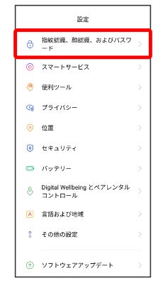 Step2:「指紋認識、顔認識、およびパスワード」を選択。