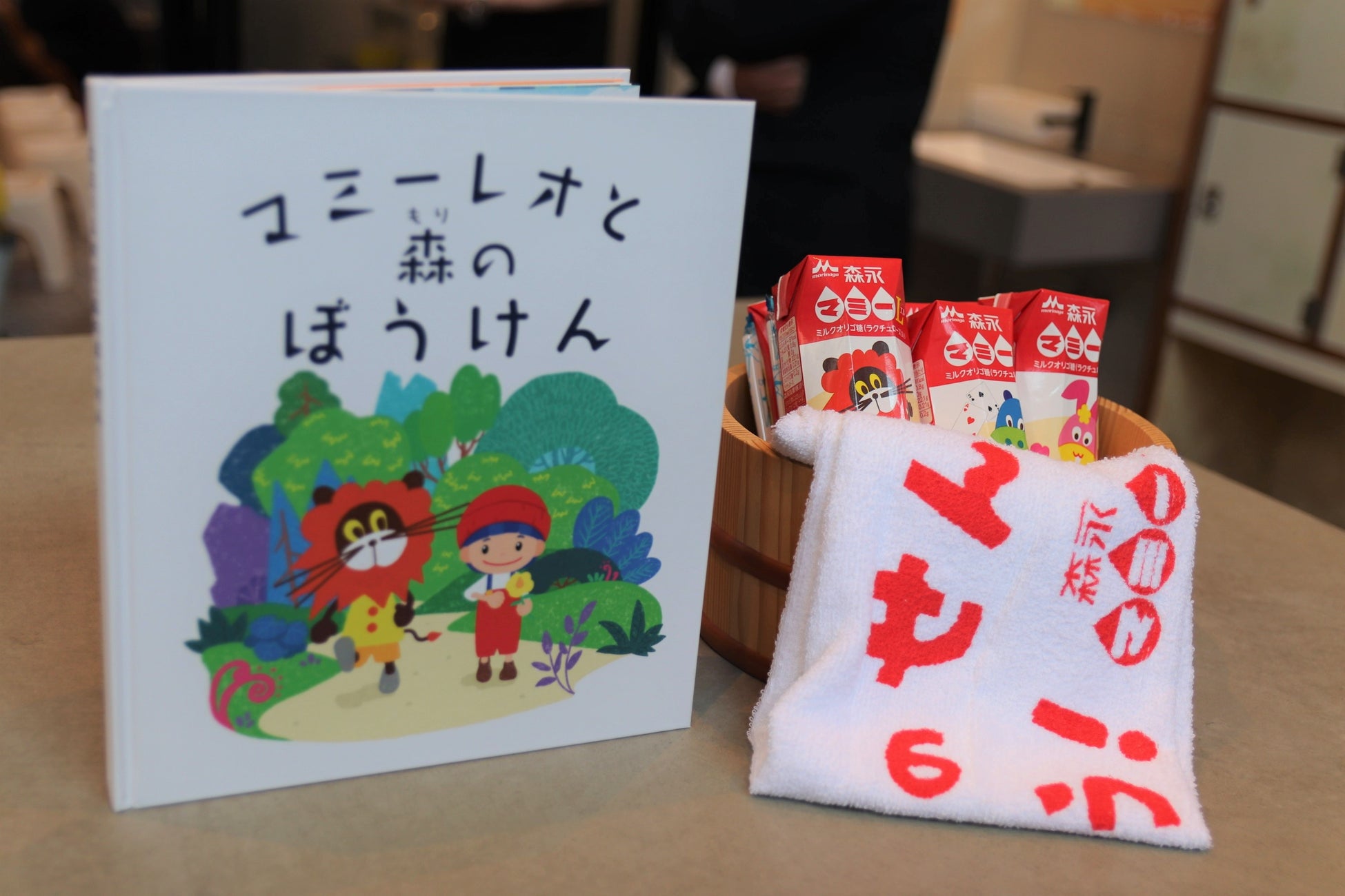 イベント期間中は、暖簾や銭湯内など、いたるところにマミーキャラクターたちが登場。子どもが入りやすいように通常よりぬるめのお湯に設定した「露天風呂」や、子ども用シャンプーを常備。親子で楽しめる工夫が随所に散りばめられています。加えて、就学前のお子さんには、「森永マミーL200ml」や「記念タオル」「絵本」などをプレゼント(無くなり次第終了)。初めての銭湯が最高の思い出になるよう、万全の準備が整っています。