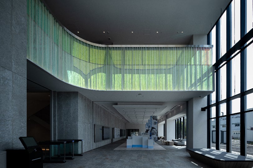 1階エントランスには、当社グループの主力製品およびそれに紐づく技術研究所発の技術を紹介するギャラリーを設けました。ご来所いただいた方に当社グループ、そして技術研究所の取り組みを広く理解していただくと同時に、創発のきっかけを提供します。