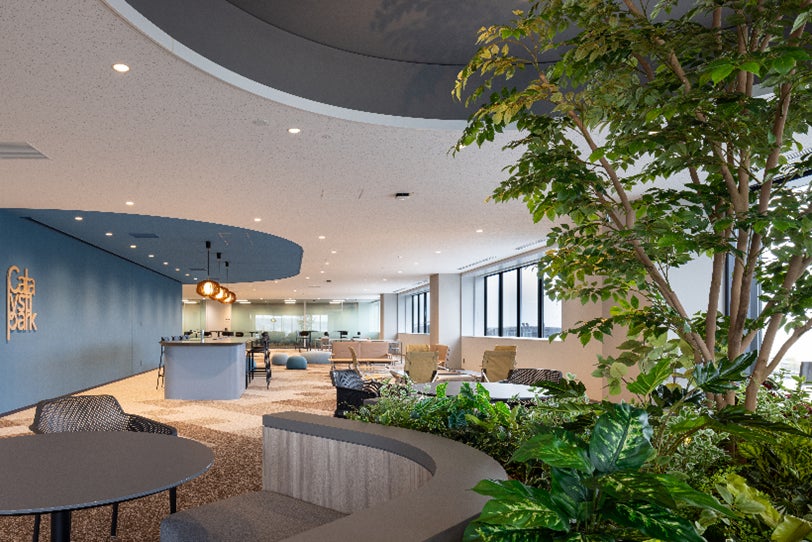 「創発」とは、部分同士の相互作用で全体として新たな価値を生み出すことを意図しています。「Cs’-Lab+」の「Cs’」はChoose、Connect、Createの“3つのC”に由来します。「選べる働きやすい環境」「つながりの場」「新たな価値の創出」を象徴すると同時に、商品やサービス開発の素となる当社グループの技術のシーズ(seeds)という意味も込めています。また、「Lab+」の「+」は、研究機能(Lab)に留まらず、創発を支えるコミュニケーションスペースやギャラリー、食堂といったさまざまな施設機能などを表現しています。
