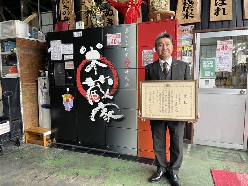 本受賞は、店舗兼倉庫内にて「ストックヤードシステム」を開始し、都度精米・都度販売方式の導入や、補助金制度を活用したスマートロッカーシステム『Quist』の導入など、極めて独自性の高い米穀販売システムが高く評価されたものです。