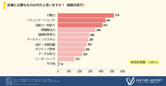 起業に必要なものは「行動力」「コミュニケーション力」「決断力・判断力」の声
