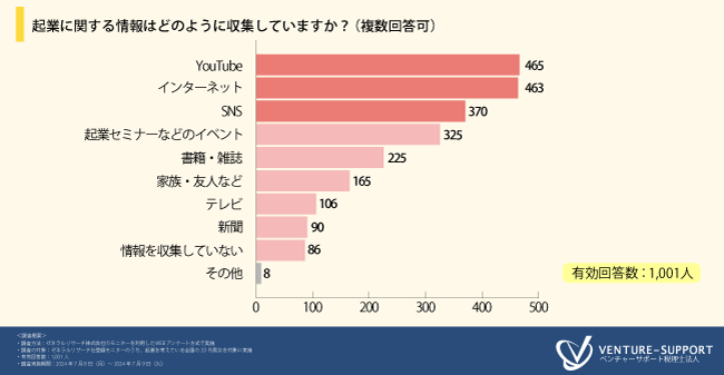 起業に関する情報収集は「YouTube」「インターネット」「SNS」から