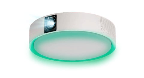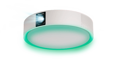 照明一体型3in1プロジェクターの最新モデル。フルHDの解像度、そしてオーディオメーカーHarman Kardon製のスピーカーを搭載しています。加えて、Aladdin Xのオリジナルコンテンツが楽しめるAladdin OSを搭載。さらに本製品は照明の照射範囲が拡大し、照明一体型のAladdin Xシリーズ最高の照明輝度となる5,500ルーメンで、最大14畳の広さに対応可能となりました。基本的な調光・調色への対応はもちろん、様々なシーンに応じて色が変化したり、その日の気分に合わせて自由自在に好みの配色を楽しめたりする「ムードライト」も新搭載。