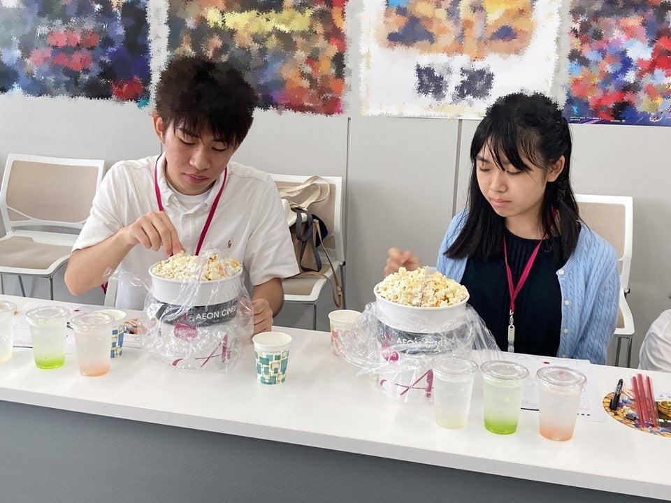 当日は職場見学だけでなく、自ら名刺を手づくりして従業員との名刺交換を体験したり、社内のスタジオで動画撮影会を行ったり、映画館売店で販売されるポップコーンや飲み物を試食し意見を述べたりと、ひと足早く“社会人経験”を積んだ子どもたちは、大満足の表情を浮かべていました。