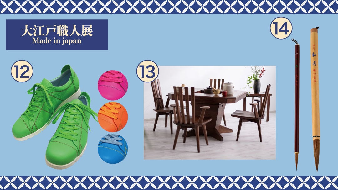 「大江戸職人展」では、江戸時代から受け継がれる筆や箒、伝統の技法を活かした工芸品から、現代の暮らしに映える創作服やジュエリーまで、職人の手仕事ならではの品々を出品。普段はなかなか出会えない逸品を間近でご覧いただけます。