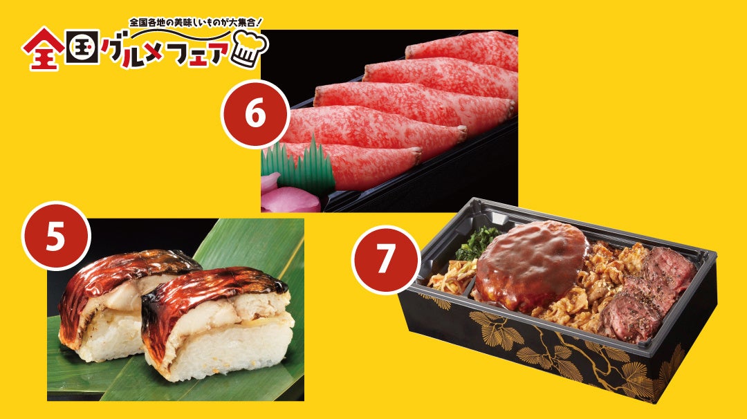 「全国グルメフェア」では、海鮮弁当や銘菓、郷土色豊かな惣菜など、日本各地の味覚を凝縮したグルメが集結。福岡「とりかわ巻き巻き」や長崎「松浦アジフライ」、東京「銀座ローストビーフ浅伊」の贅沢なにぎりなど、地域自慢の逸品を多数ご紹介いたします。さらに、日替りで登場する数量限定奉仕品や、会期中のみお求めいただける特別奉仕品も見逃せません。