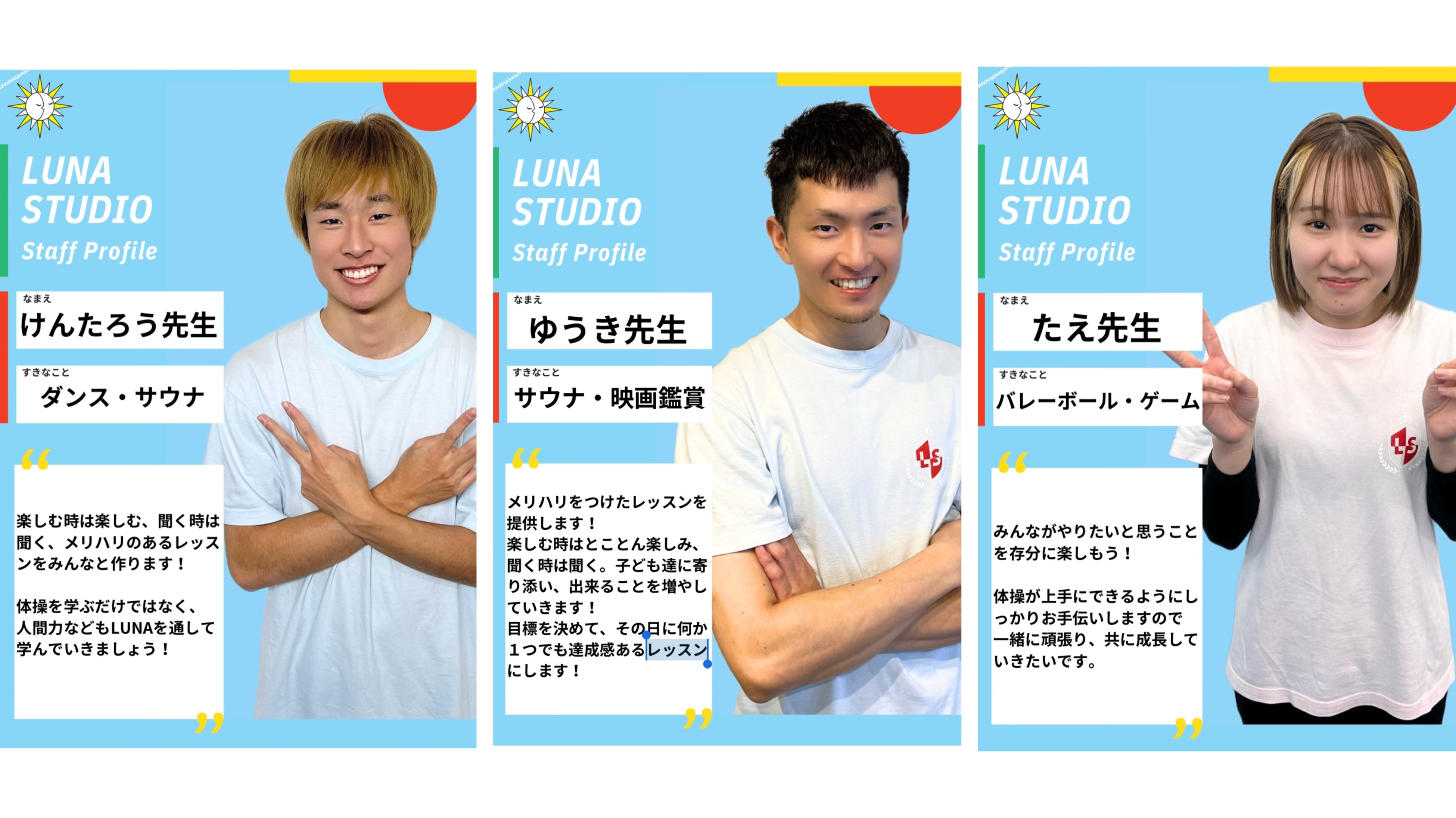 子ども向け体操教室【LUNA STUDIO】先生のプロフィールカードをリニューアル!