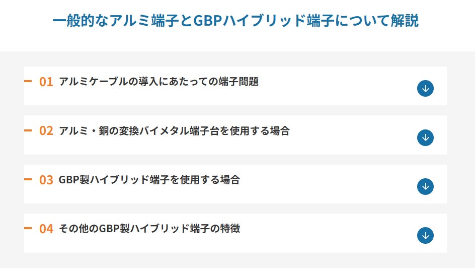 再生可能エネルギー、EV自動車部品、AI及びIoT領域における先進技術を駆使し、グローバルで急速に成長している,~再エネ業界の風雲児~ GBP株式会社(本社:東京、以下GBP)は、ハイブリッド端子の特設ページをWEBサイト内にオープンしました。日本において一般的なアルミ端子の接続と、バイメタル端子台を使わないハイブリッド端子(銅アルミ合金端子)を解説し、アルミケーブルの導入にあたっての端子問題のノウハウを共有します。