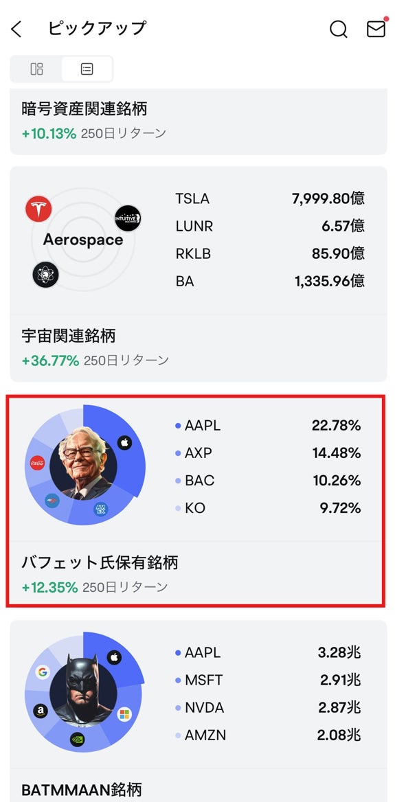 moomoo証券、バフェット氏はじめ著名投資家のポートフォリオをコピペできるテーマ投資機能、「ピックアップ」を無料で提供開始!