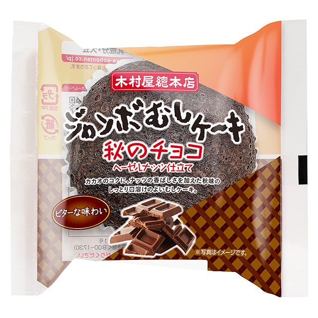 カカオのコクにナッツの香ばしさを加えた、秋らしいビターな味わいのしっとり口溶けのよいむしケーキです。(ヘーゼルナッツ仕立て)