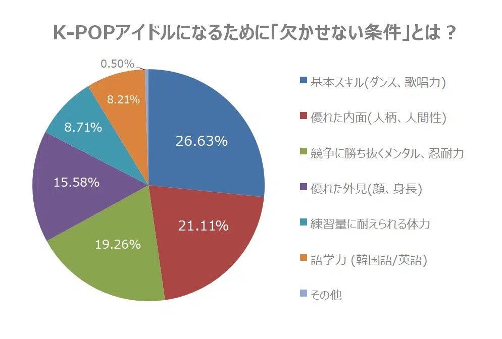 【調査結果】K-POPファン教えて! 日本の若者がK-POPアイドルになるのに「最も欠かせない条件」とは?