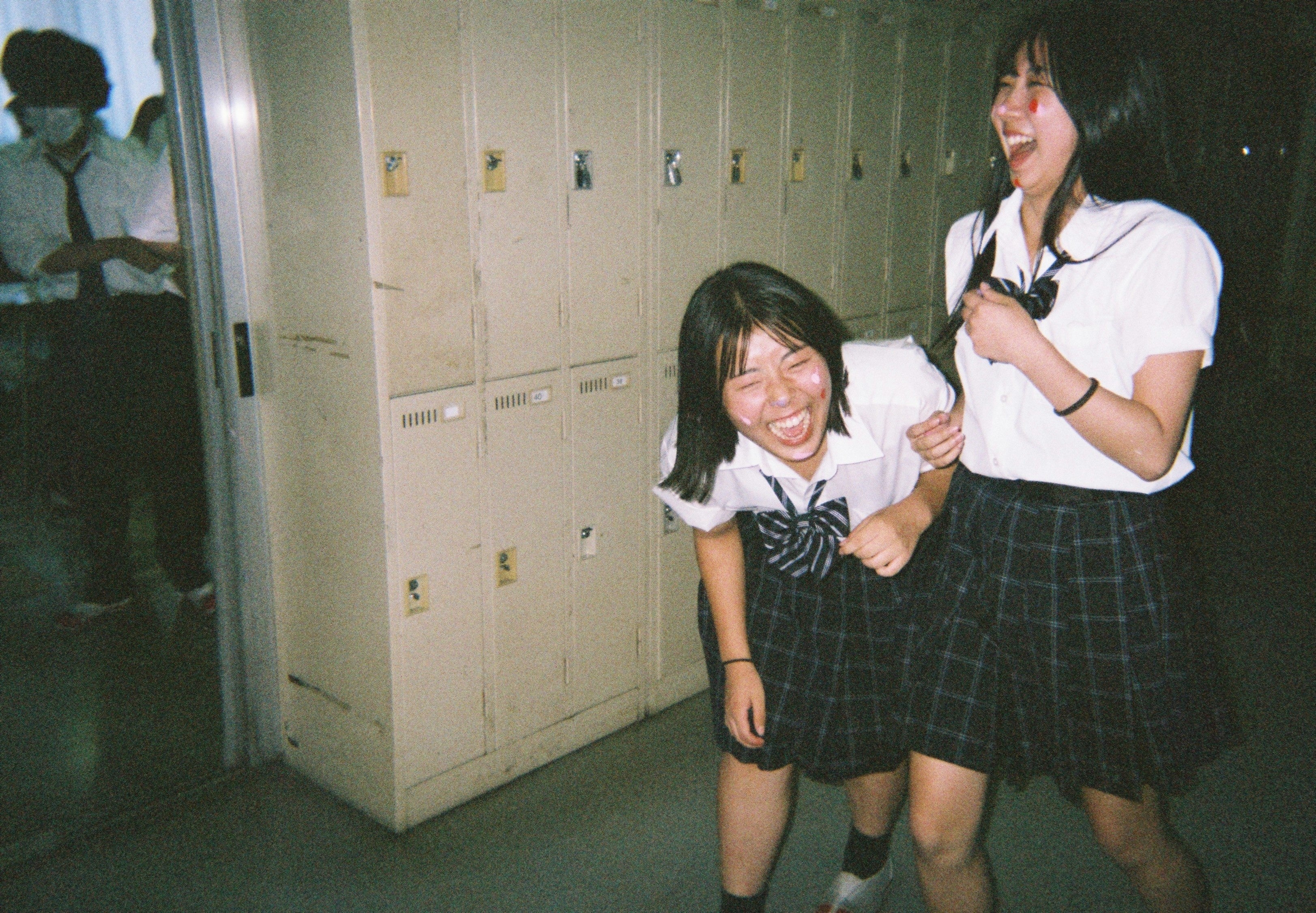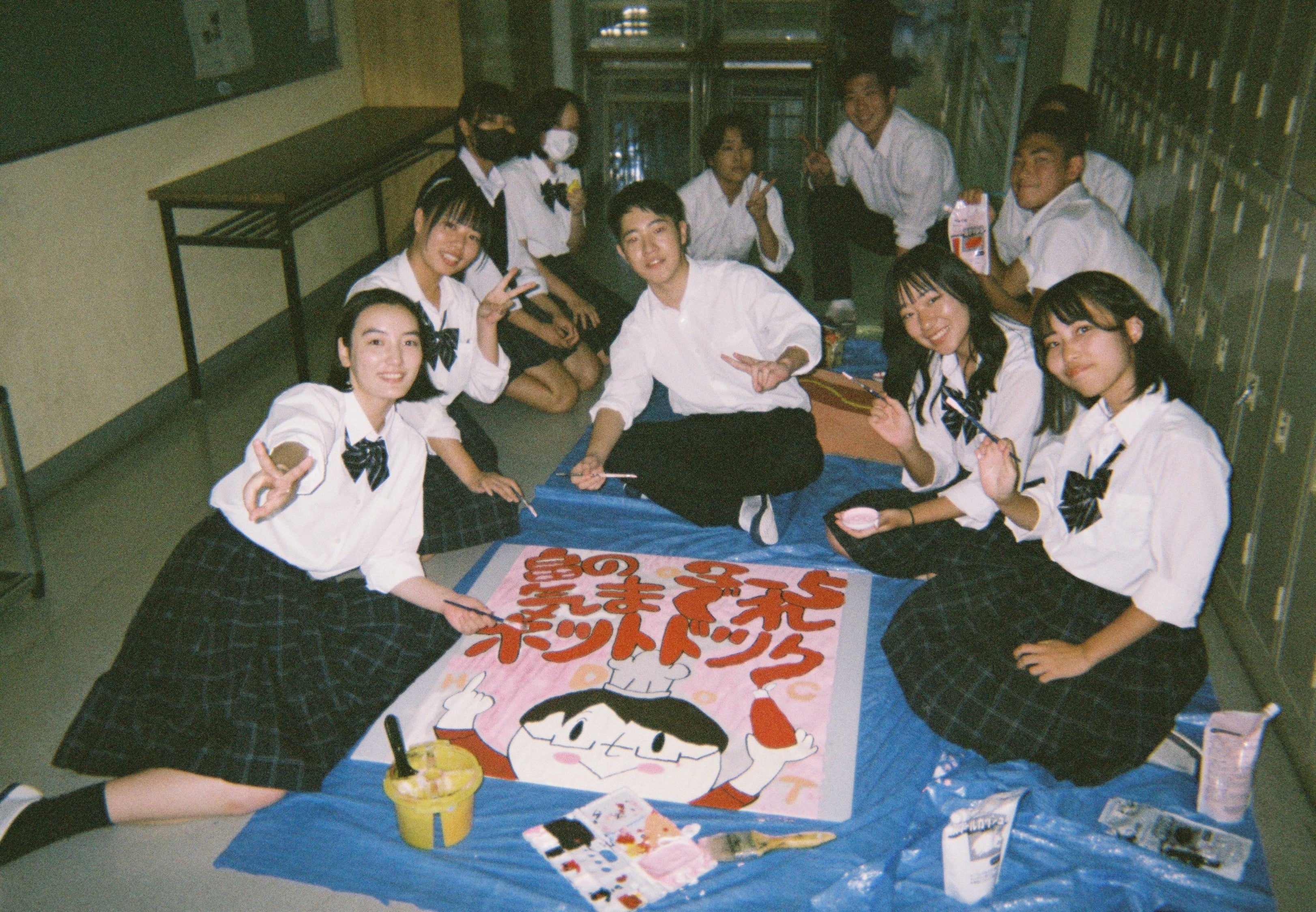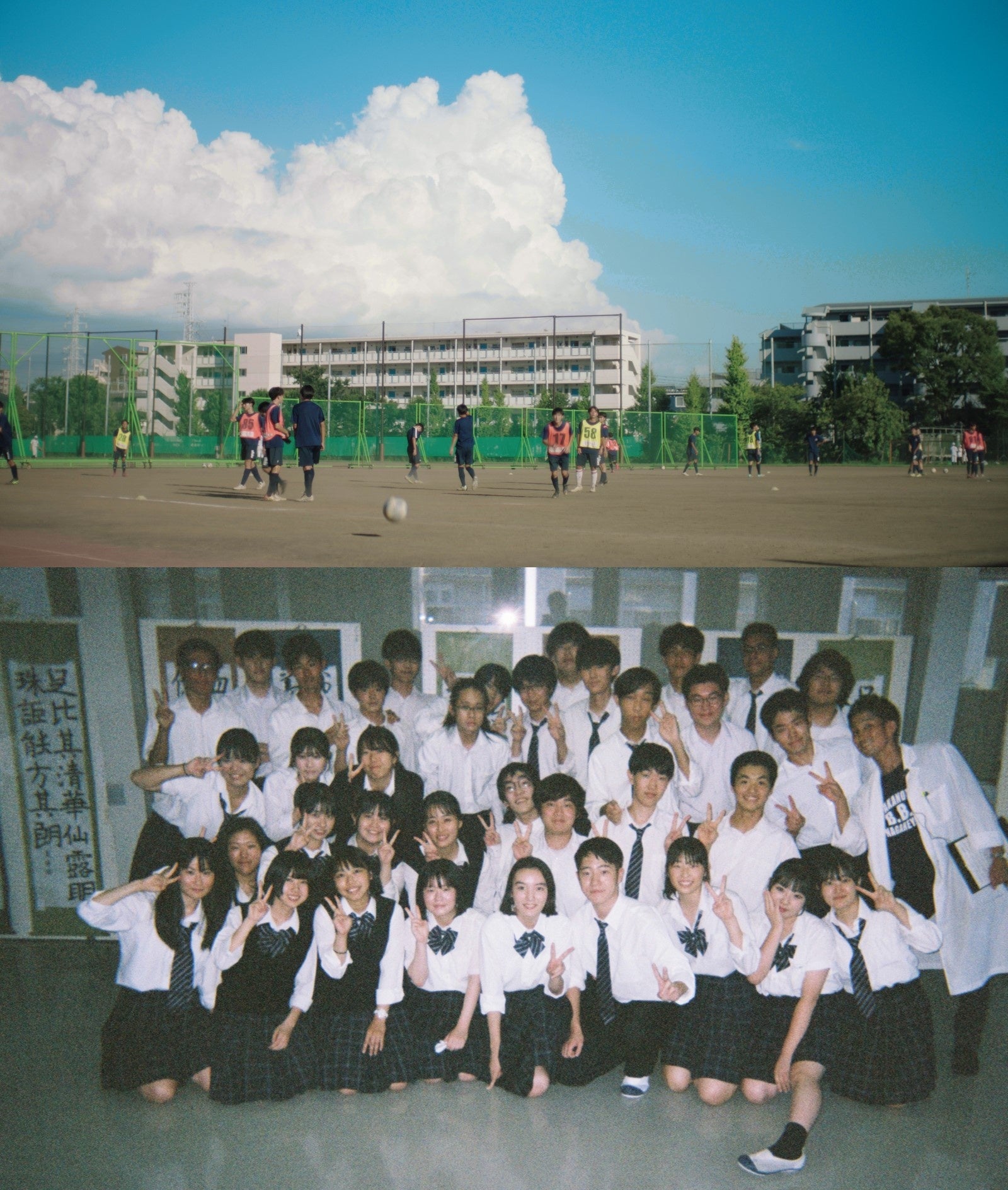 当日は現役の生徒さん達にも多数エキストラ参加をいただき、学校内(教室、視聴覚室、プール、ピロティ、グラウンドなど)のみならず、近くの土手や街中での撮影も敢行。