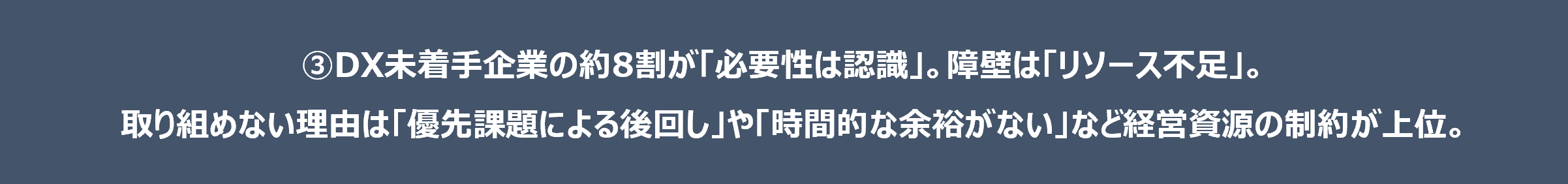 ③DX未着手企業の8割が「必要性は認識」。障壁は「リソース不足」。