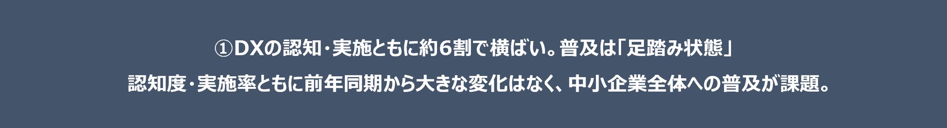 ①DXの認知・実施ともに約6割で横ばい。普及は「足踏み状態」