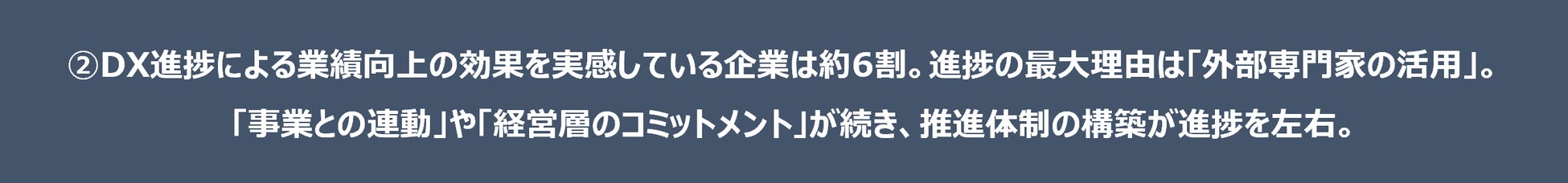 ②DX実践企業の6割が「業績向上」を実感。進捗の最大理由は「外部専門家の活用」。