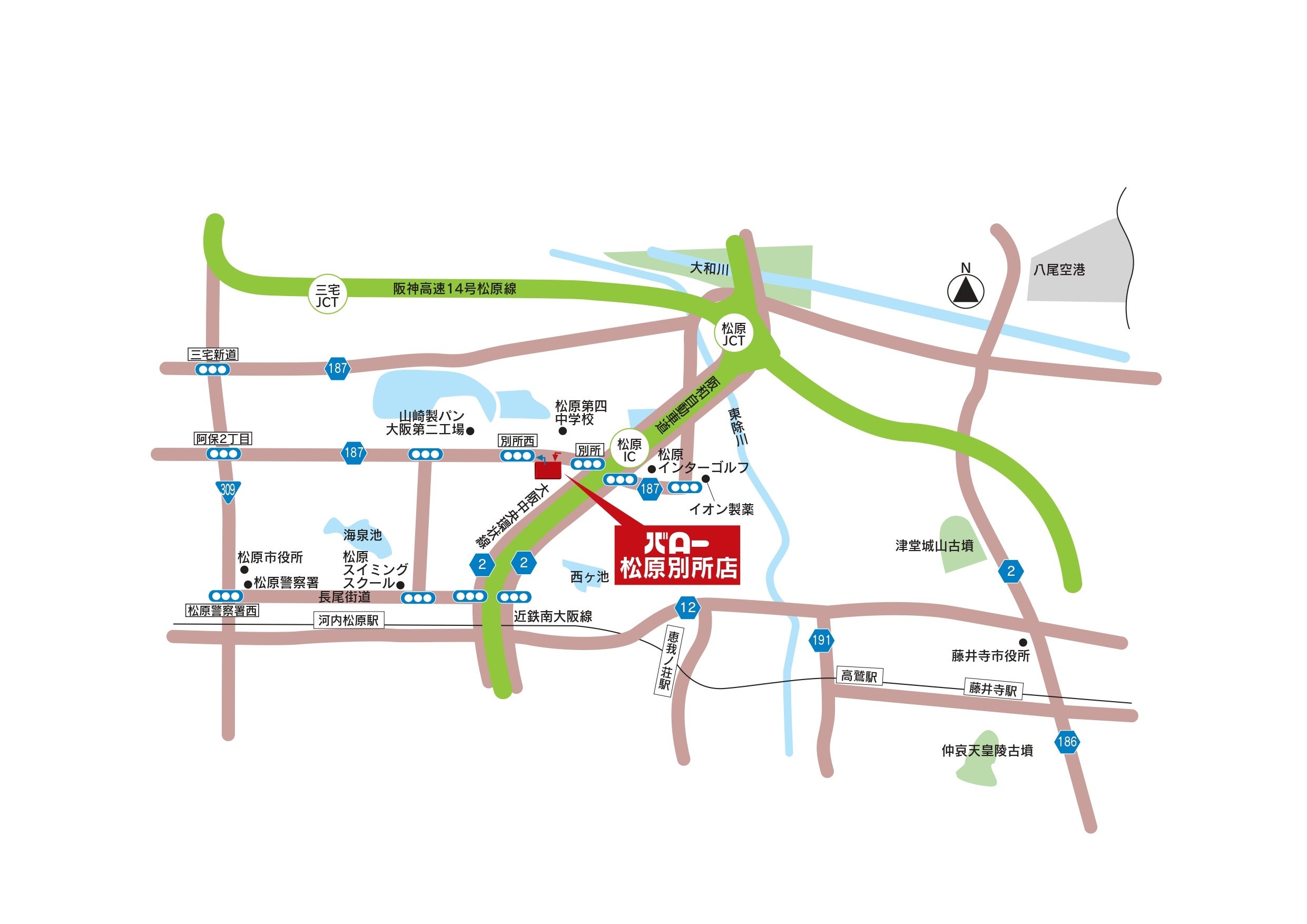 近隣店舗には先期オープンした堺豊田店、今期オープンのリノアス八尾店があります。大阪南部エリアへの出店により、地域のみなさまにバローができて良かったと言ってもらえる店舗作りを目指します。お客様に喜んで頂ける店舗を作り上げ、地域一番店になることがバロー松原別所店の使命です。