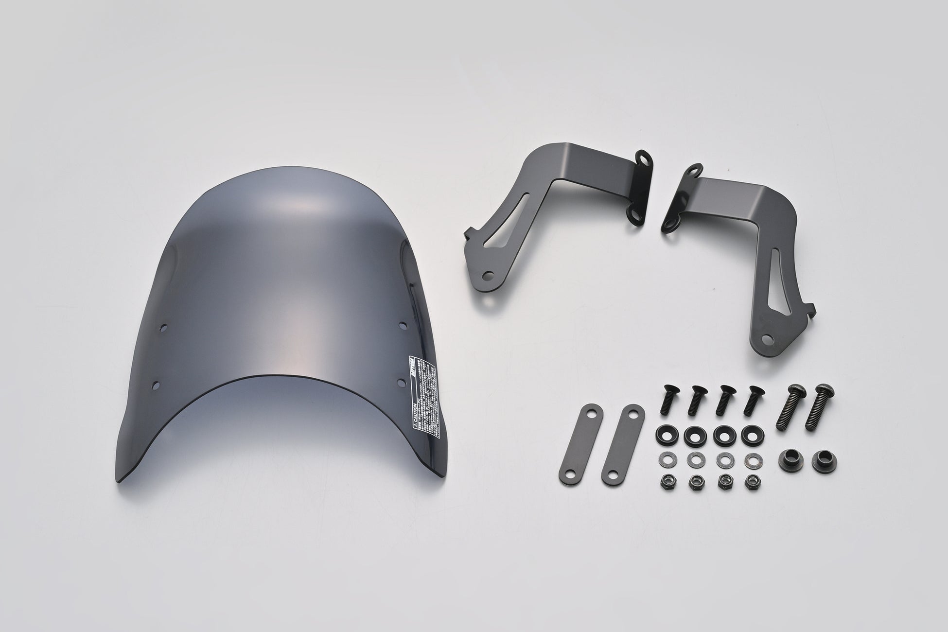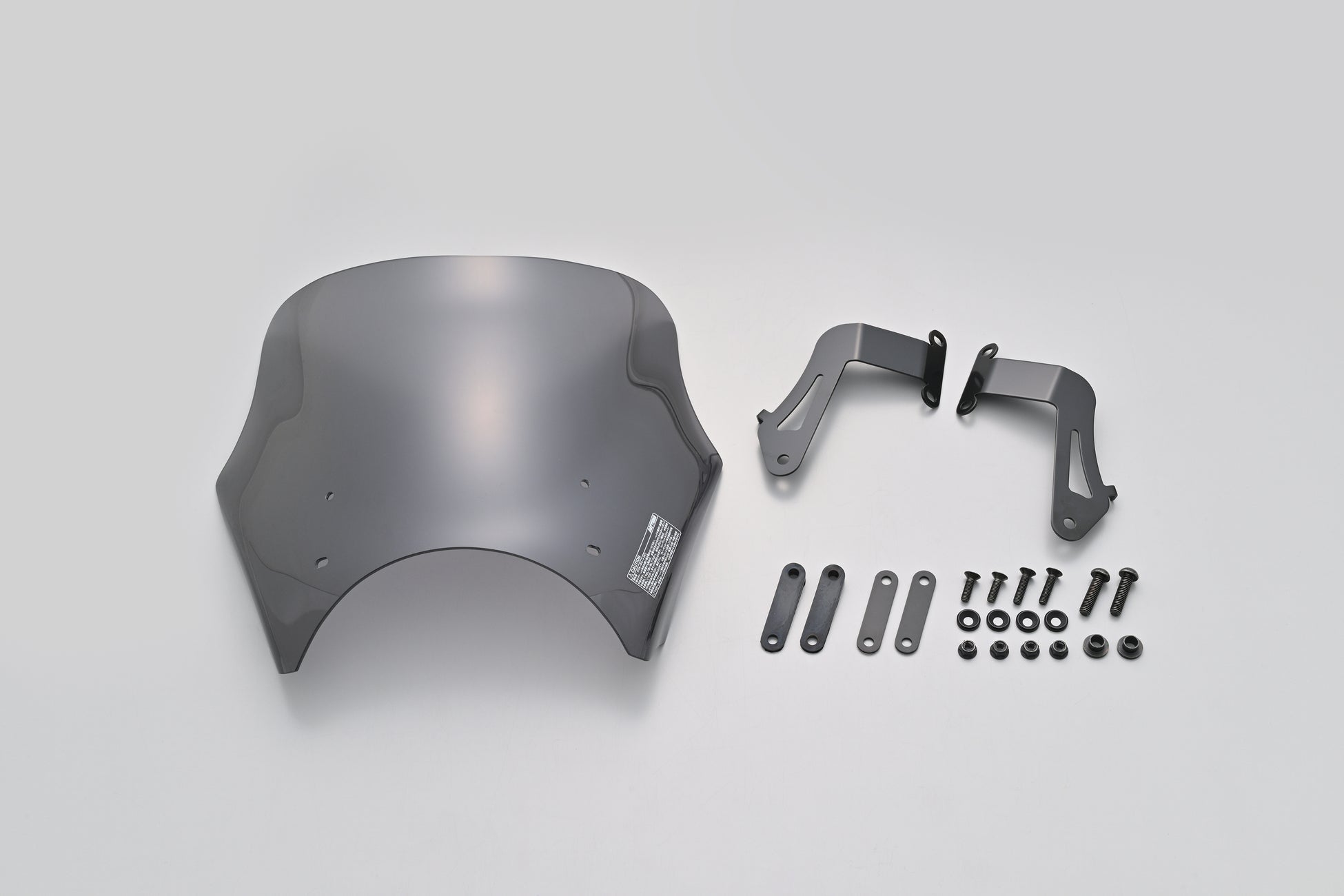 高い透明度と耐久性を両立する、日本製のポリカーボネイト(厚さ2mm)を採用したミニバイザーです。車体のフォルムを崩さないデザインが、フロント周りをスタイリッシュに演出します。スクリーン色:スモーク。