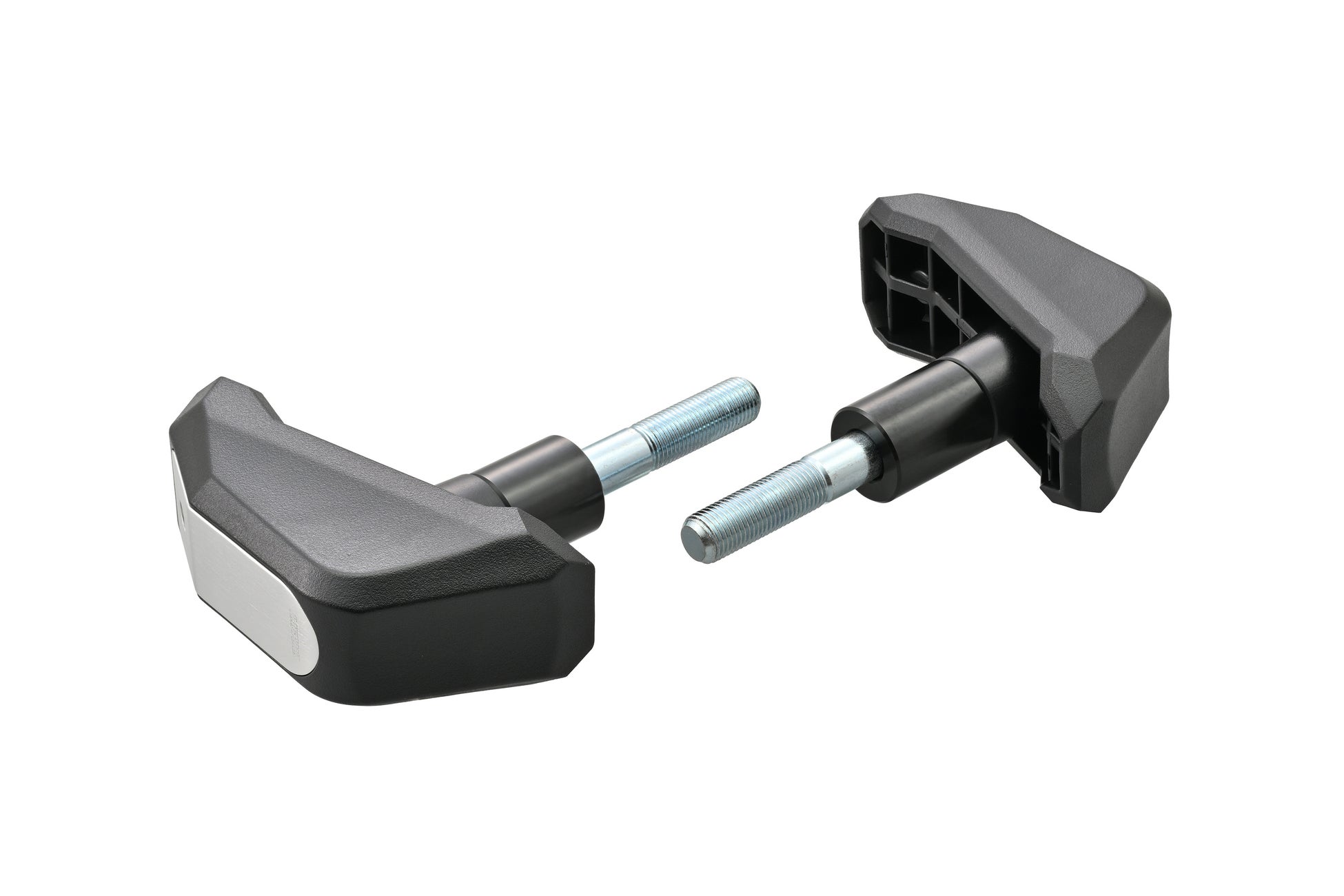樹脂製パッドと土台のアルミベースを一体構造にすることで、十分な強度を確保します。転倒時の衝撃を受け流し、クランクケース割れなどの致命的なマシンダメージを最小限に軽減します。車種毎に適正な張り出し量を設定しています。左右セット。※当社エンジンガード(品番:62415)の同時装着が可能です。
