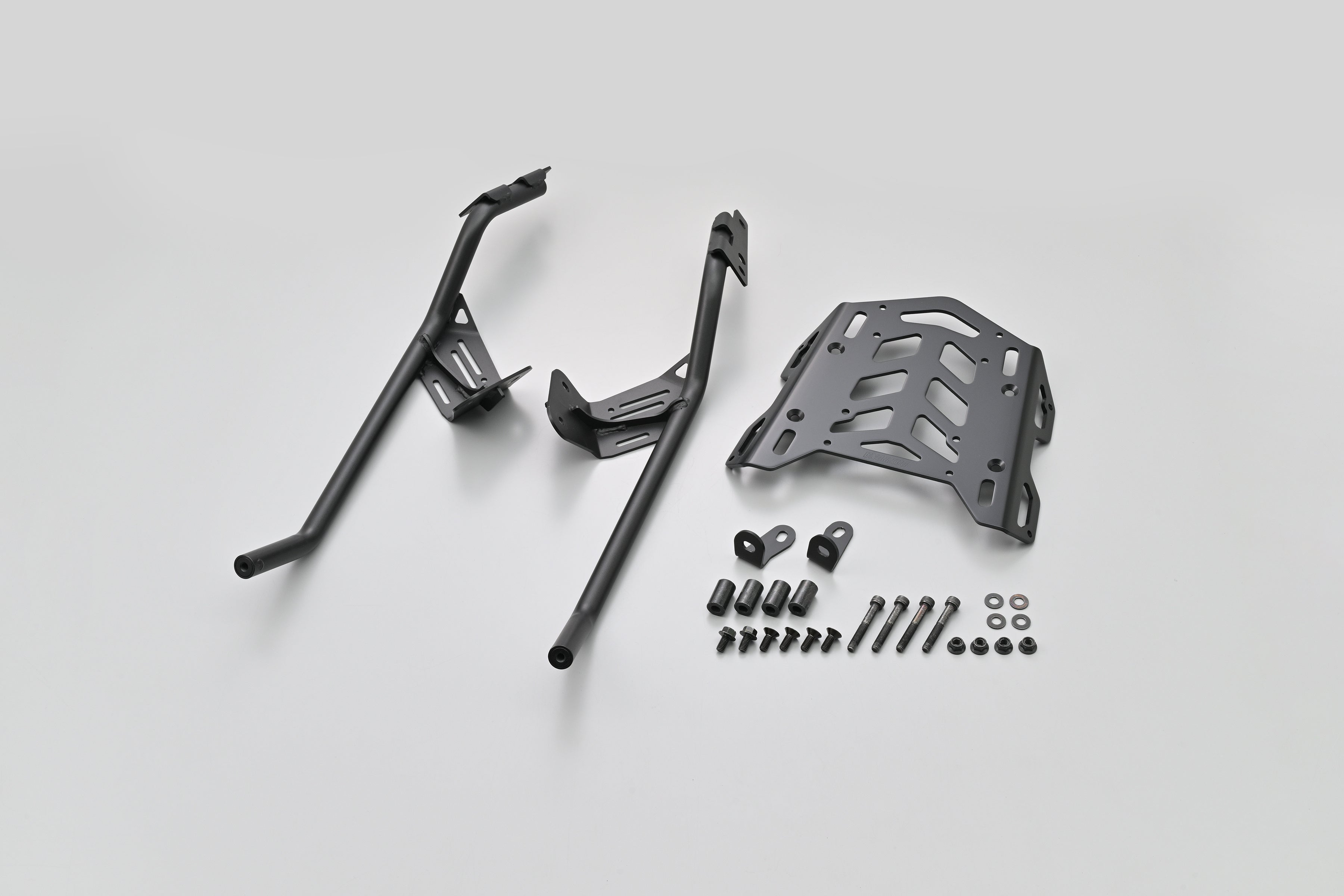 アルミ製のトッププレートを車種毎に専用設計した取り付けフィッティング装着することで、荷物を積載しない状態でも違和感のないデザインを実現しています。ヘルメットホルダー(62591/62589)の同時装着が可能です。