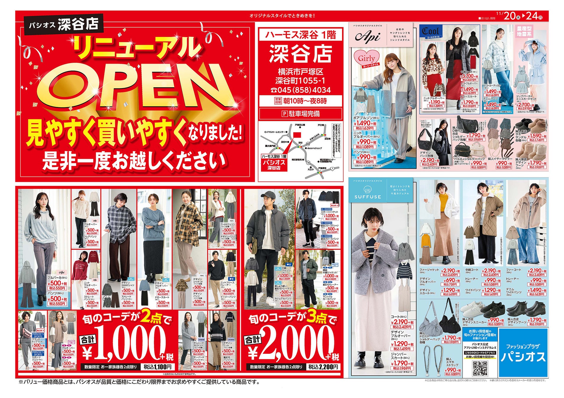 【11/20(木)OPEN】パシオス深谷店が改装してリニューアルOPEN