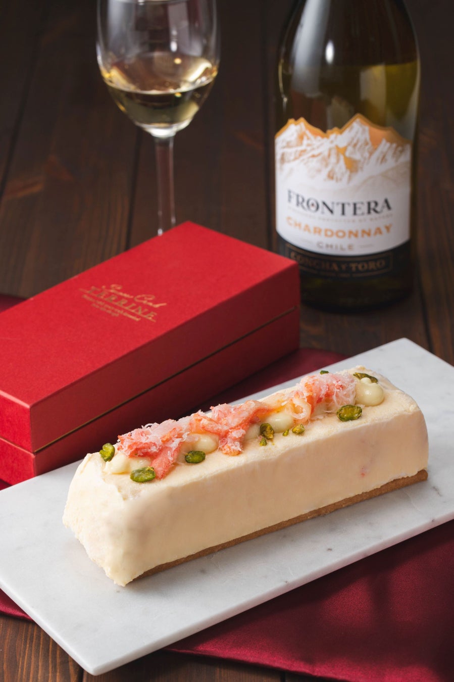 濃厚なチーズテリーヌに、山陰で水揚げされた質の良いズワイガニの身を練り込み、ピスタチオとホワイトチョコをトッピング!