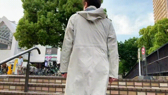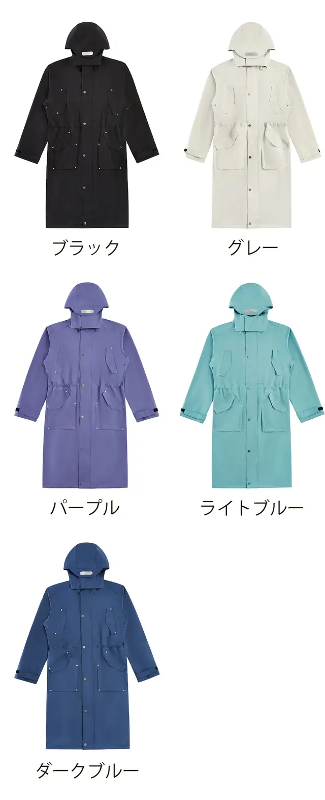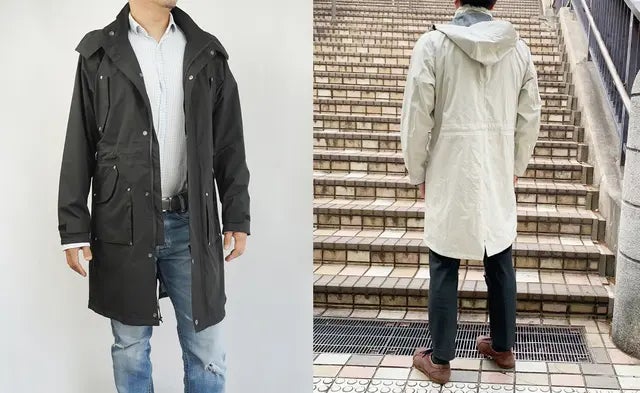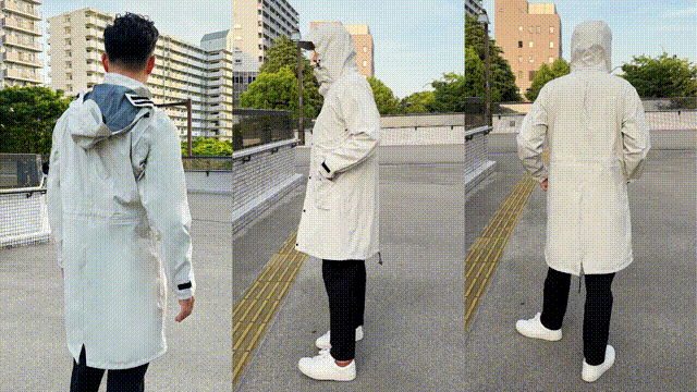 機能性とファッション性を両立させたデザインは、無粋な前世代的な「雨合羽」や「山登り」のイメージとは異なる都会に似合うアウターとしてのデザインの目指して作成しました。