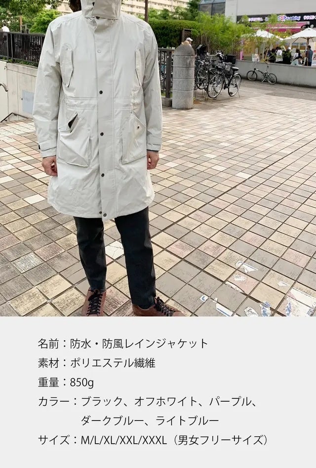 高密度の縫製技術を採用した「防水・防風レインジャケット」は、軽量で通気性があり、耐久性も備えています。雨水の侵入を防ぎながら、快適な着用感と通気性を確保し、蒸れて暑くなりすぎることなく、レインコート内の適度な着心地を実現します。