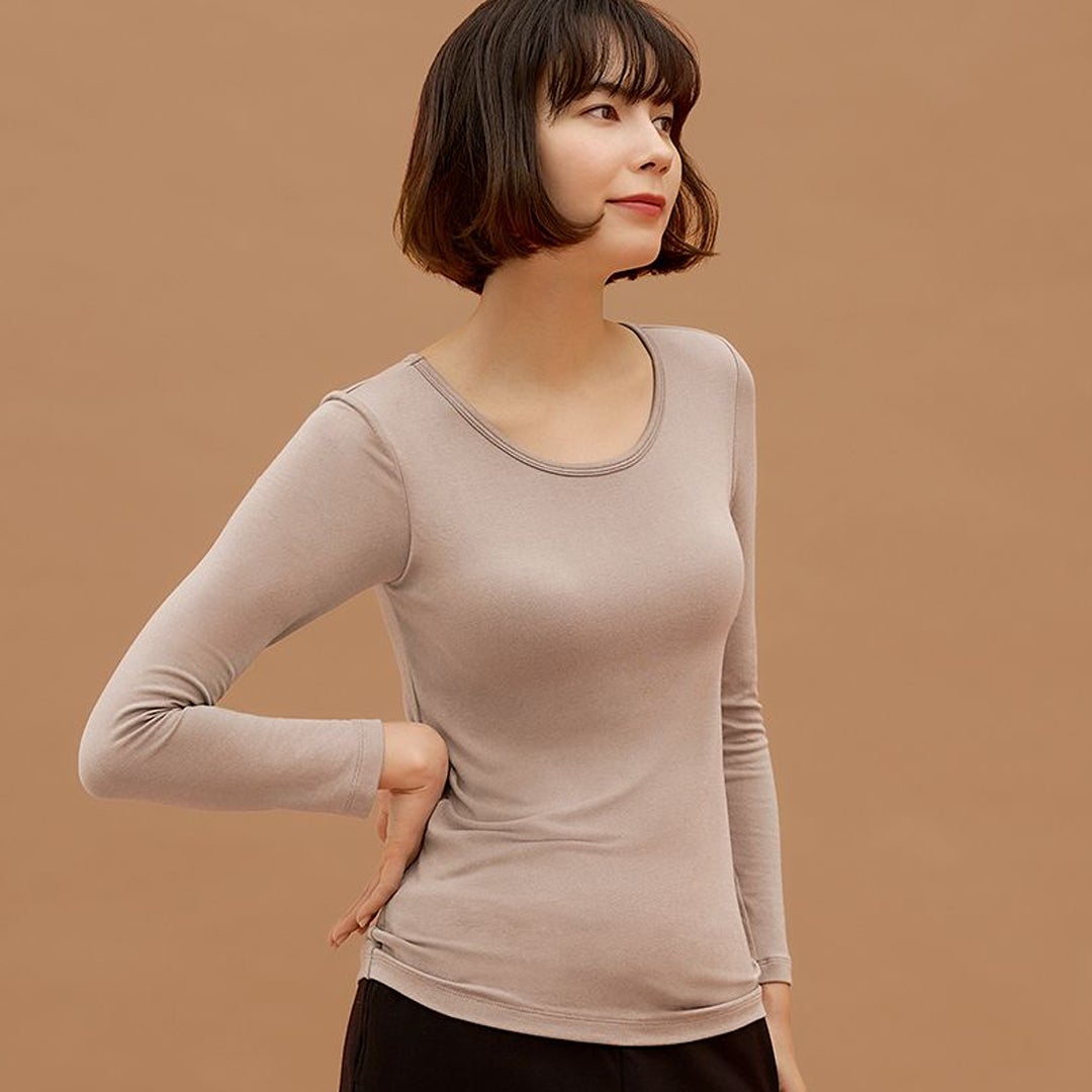 薄くて軽いのに遠赤外線加工素材であたたかく快適に過ごせます。柔らかい着心地でルームウェアとしても◎